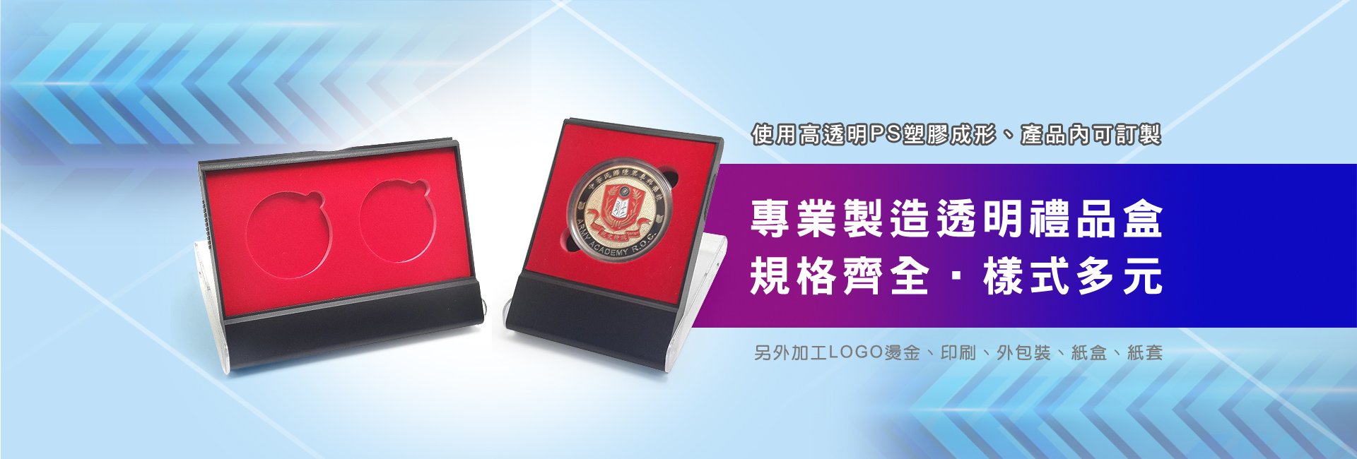 主要產品:塑膠透明包裝盒,產品用於放置 袖扣、鑰匙圈、領帶夾、書籤、湯匙、金屬徽章、吊飾、胸針、項鏈、戒指、獎章、紀念幣、高爾夫周邊… 等外包裝盒